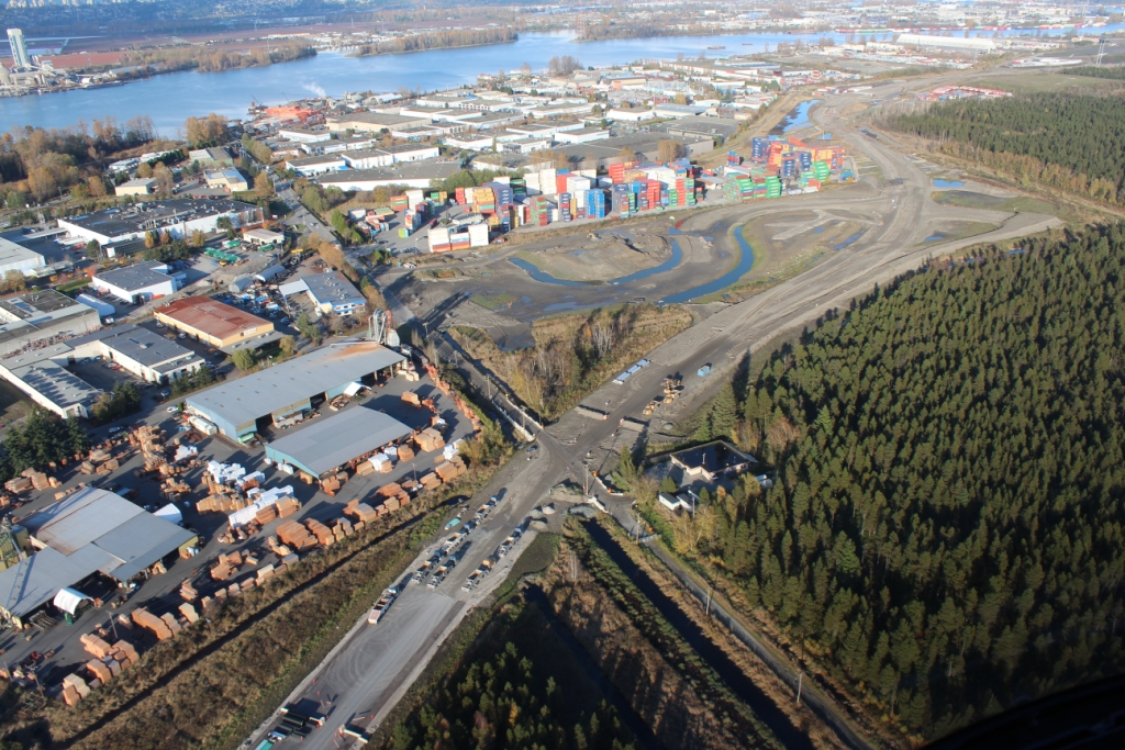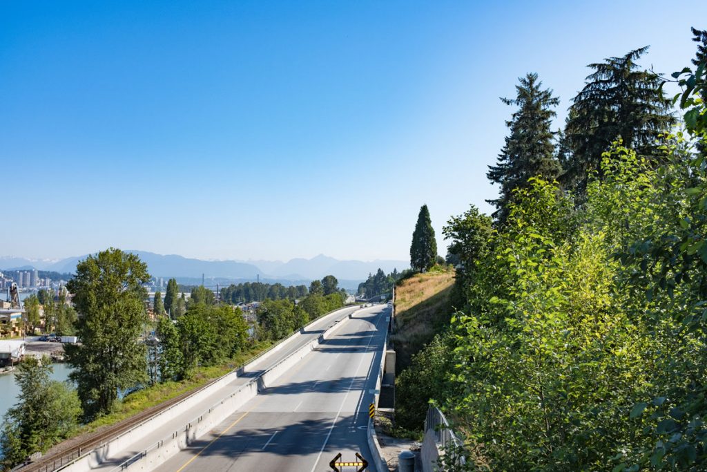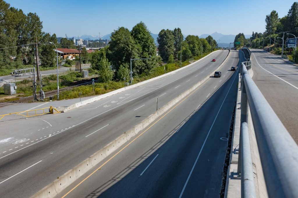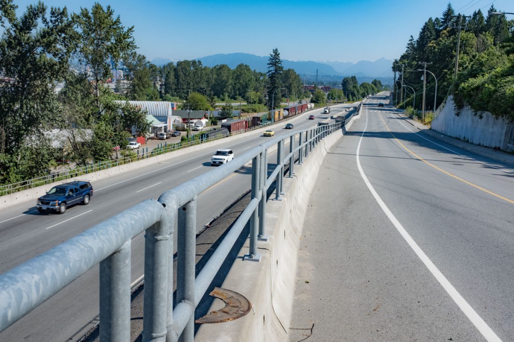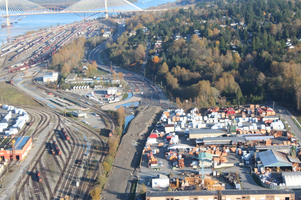 SFPR will pass under the Southern Railway line and Pattullo Bridge_112A Avenue pedestrian overpass behind